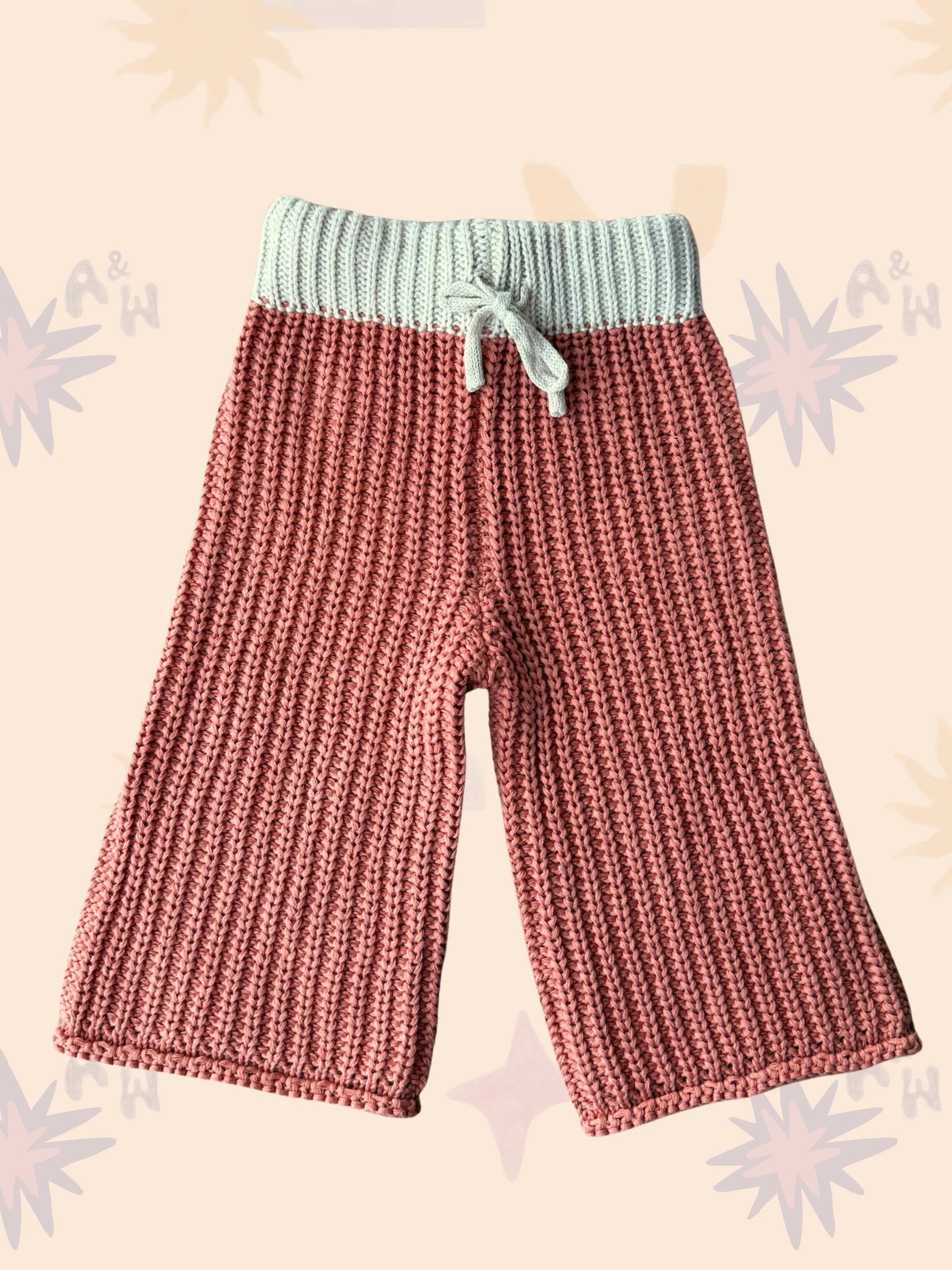 Our Chunky Knit Pants are crafted from breathable 100% cotton knit with a soft elastic waistband for all-day comfort. The relaxed fit allows for easy movement during play, naps, or anything in between.