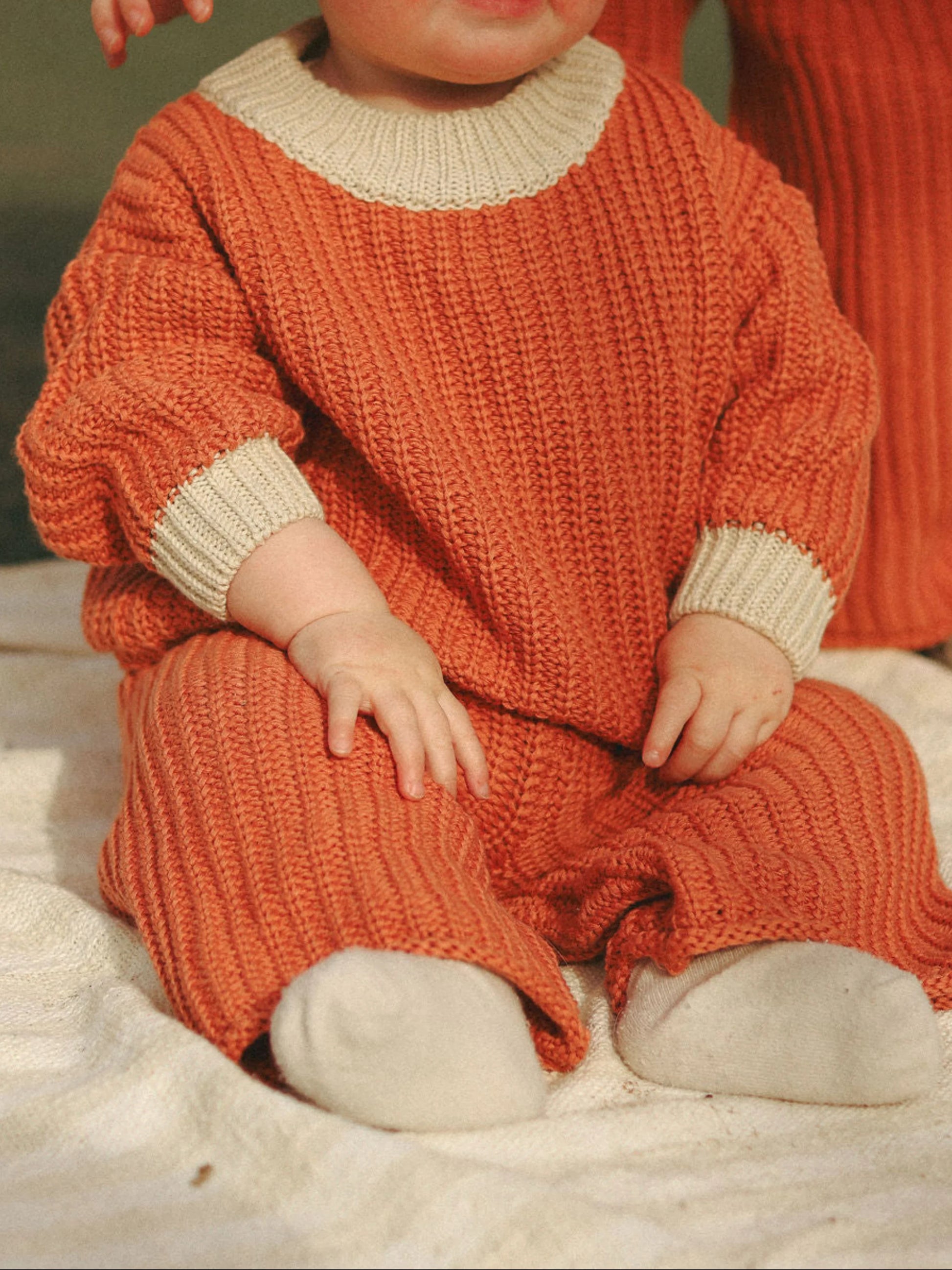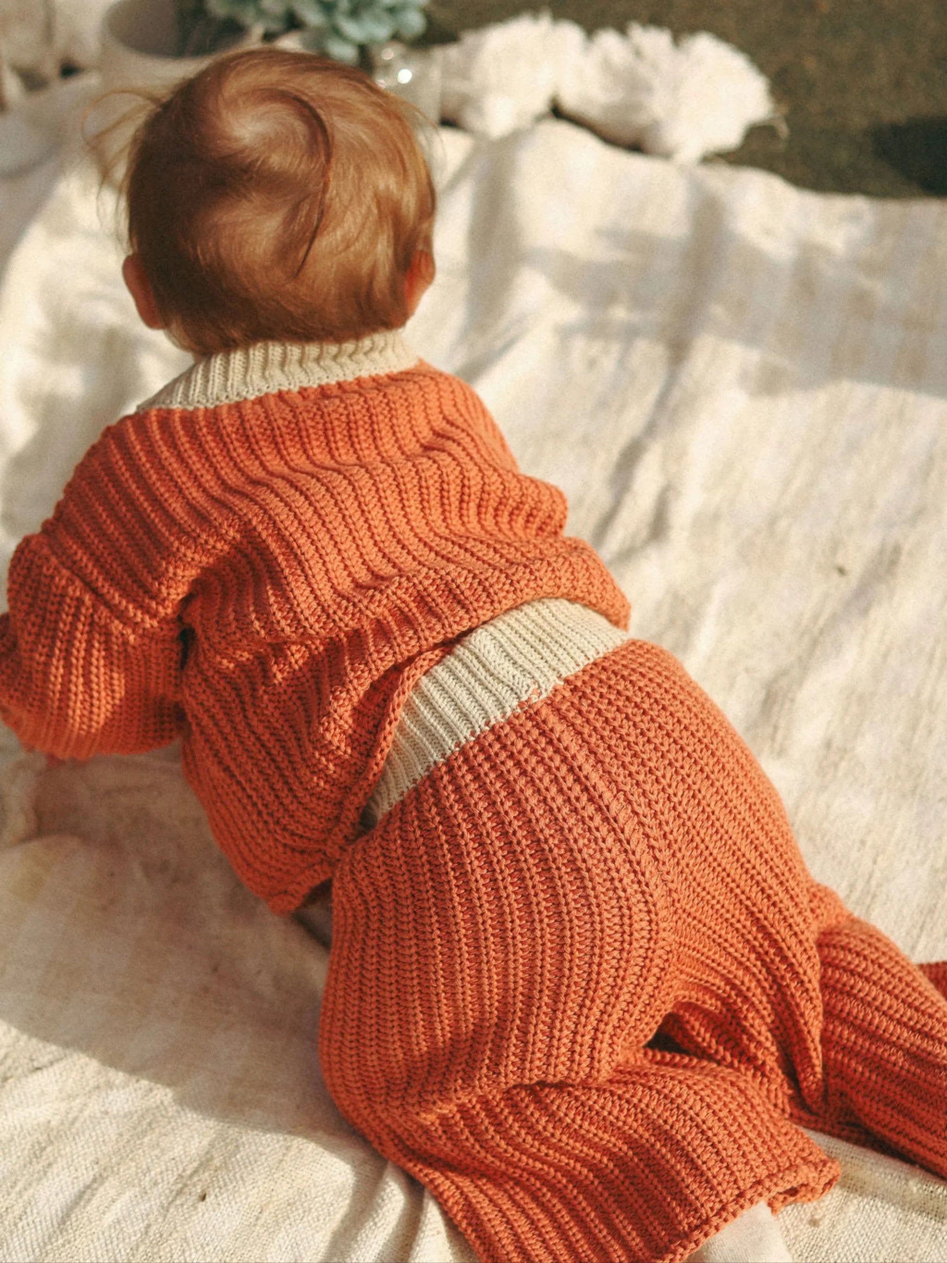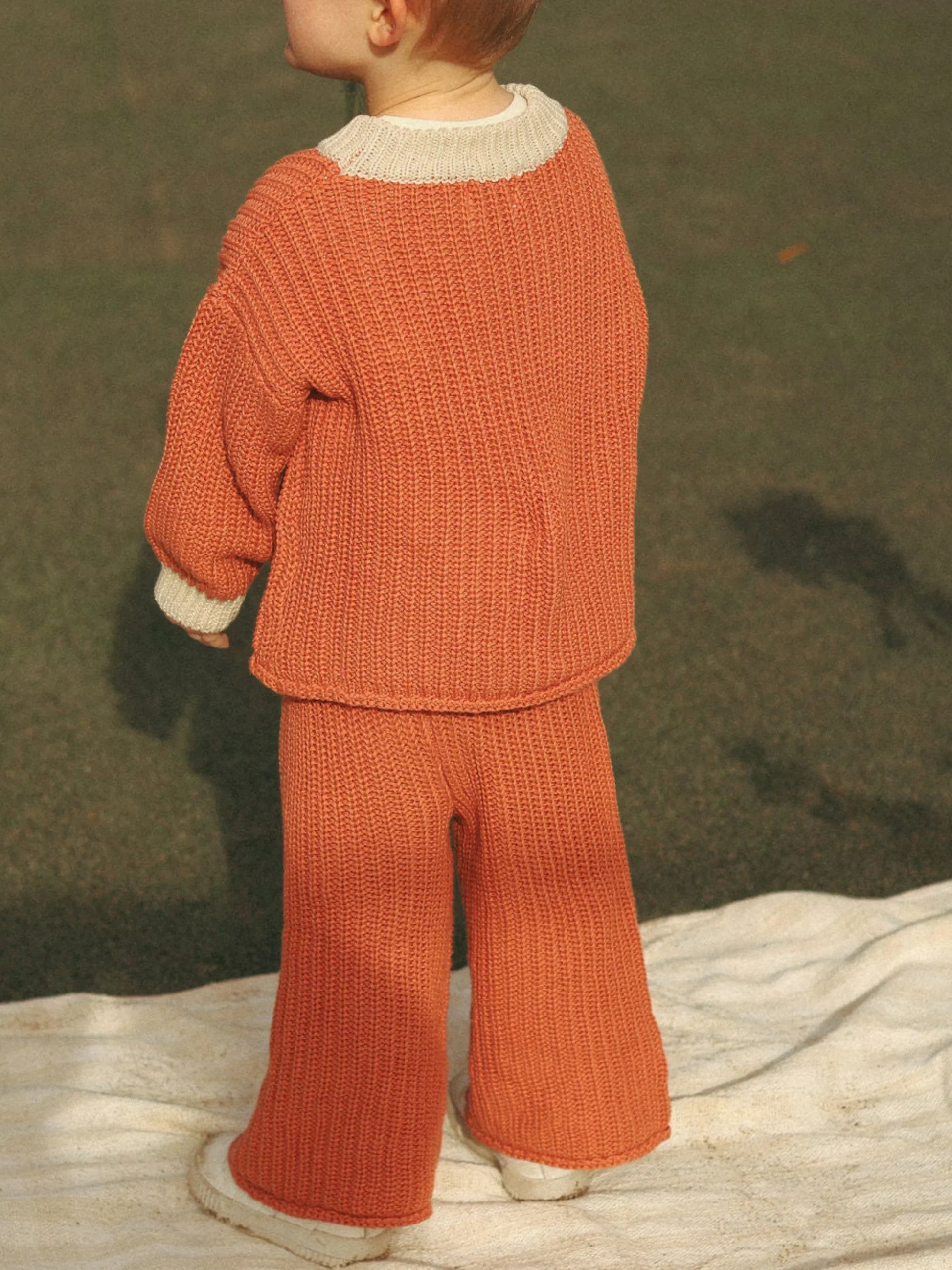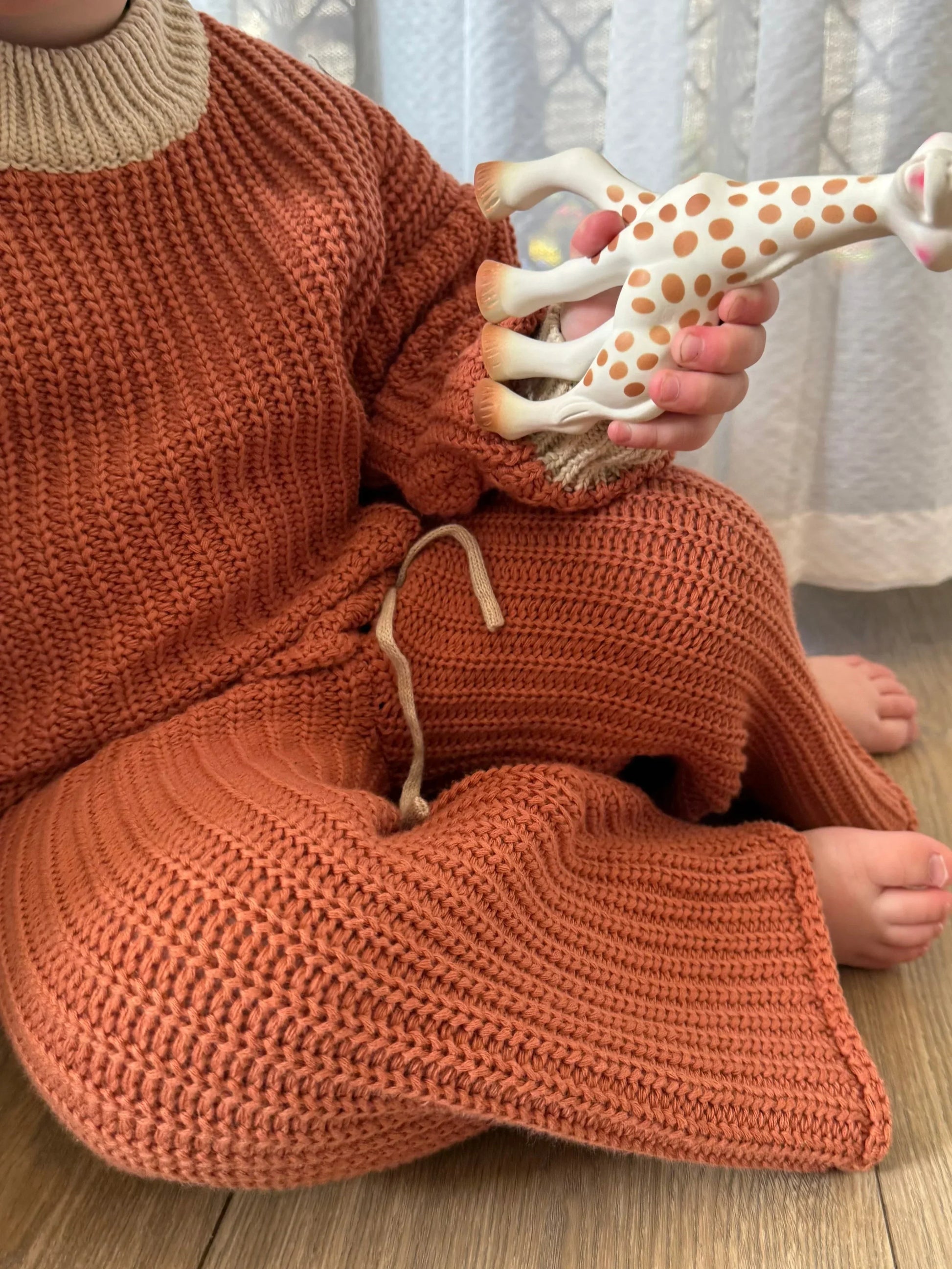 The rich rust tone adds a warm, earthy feel to their winter wardrobe and pairs beautifully with the matching Rust Chunky Knit Pants.