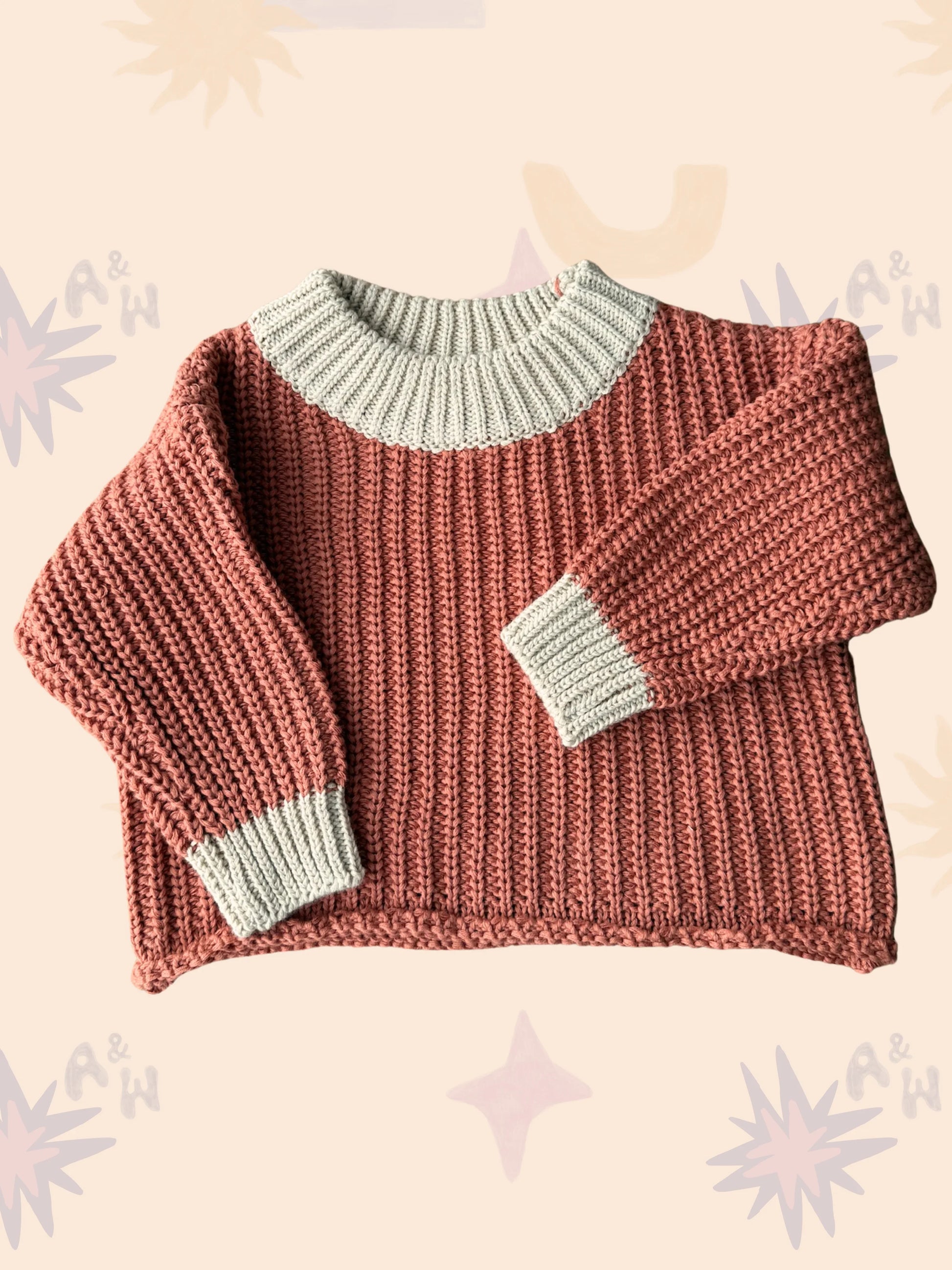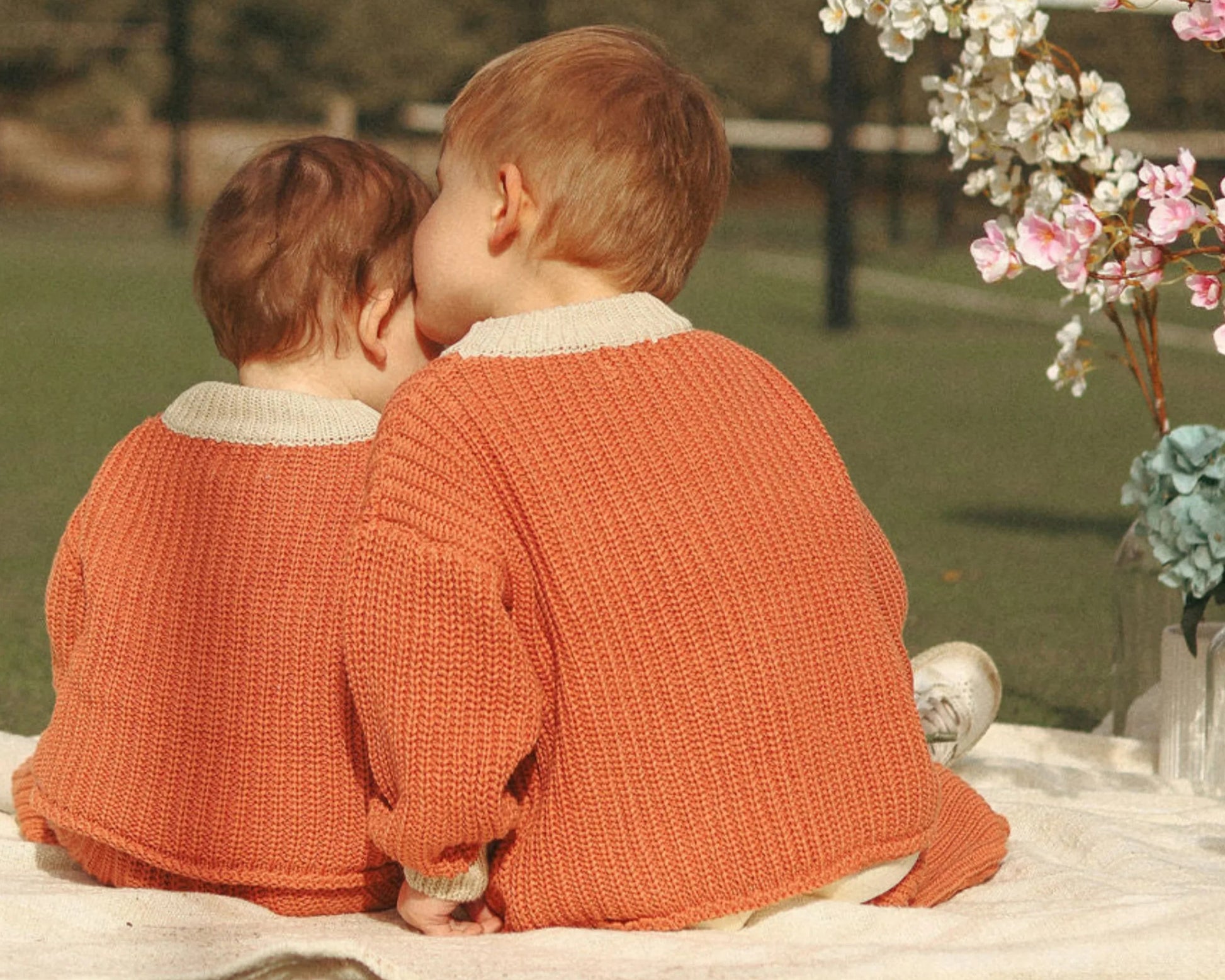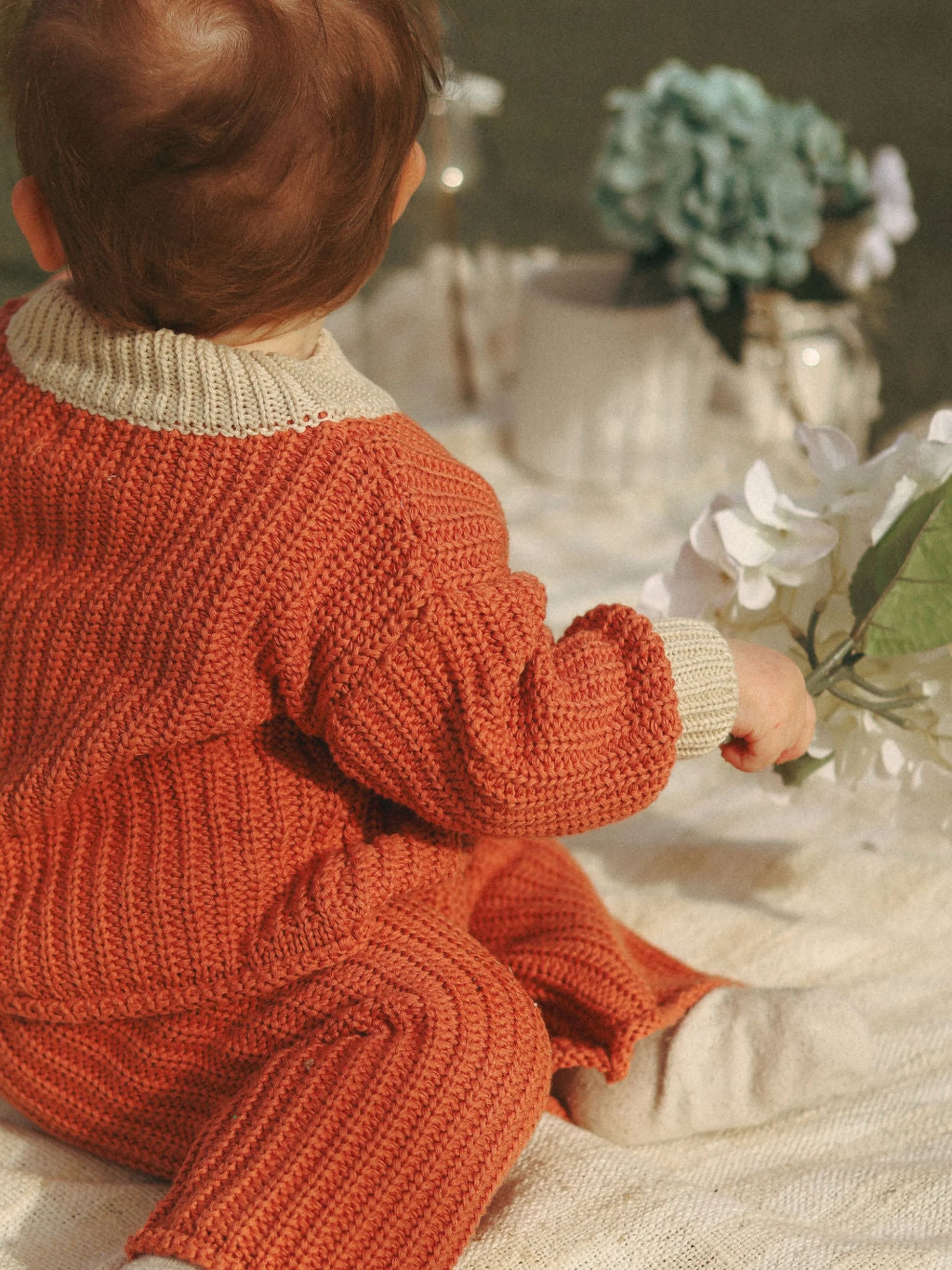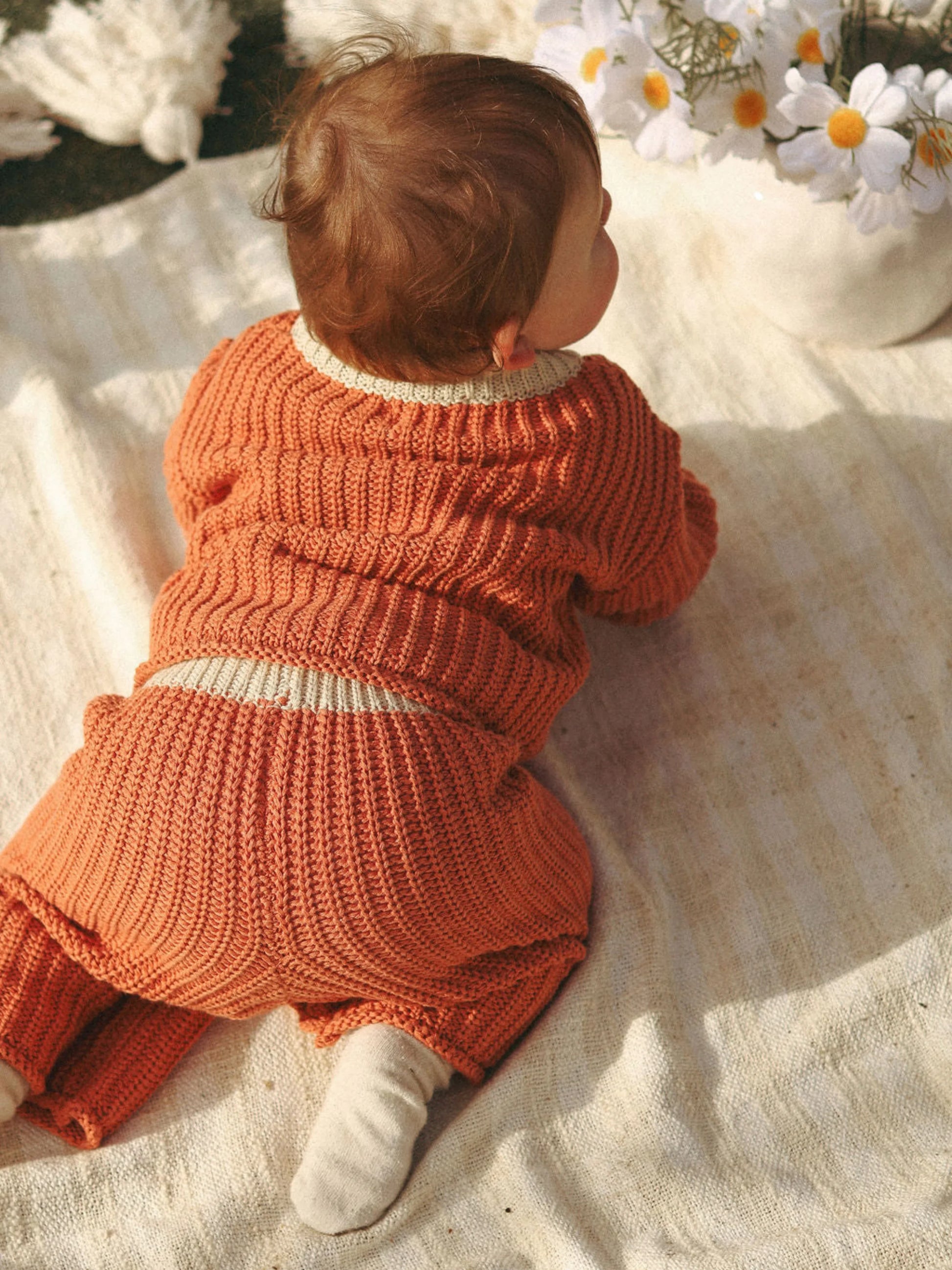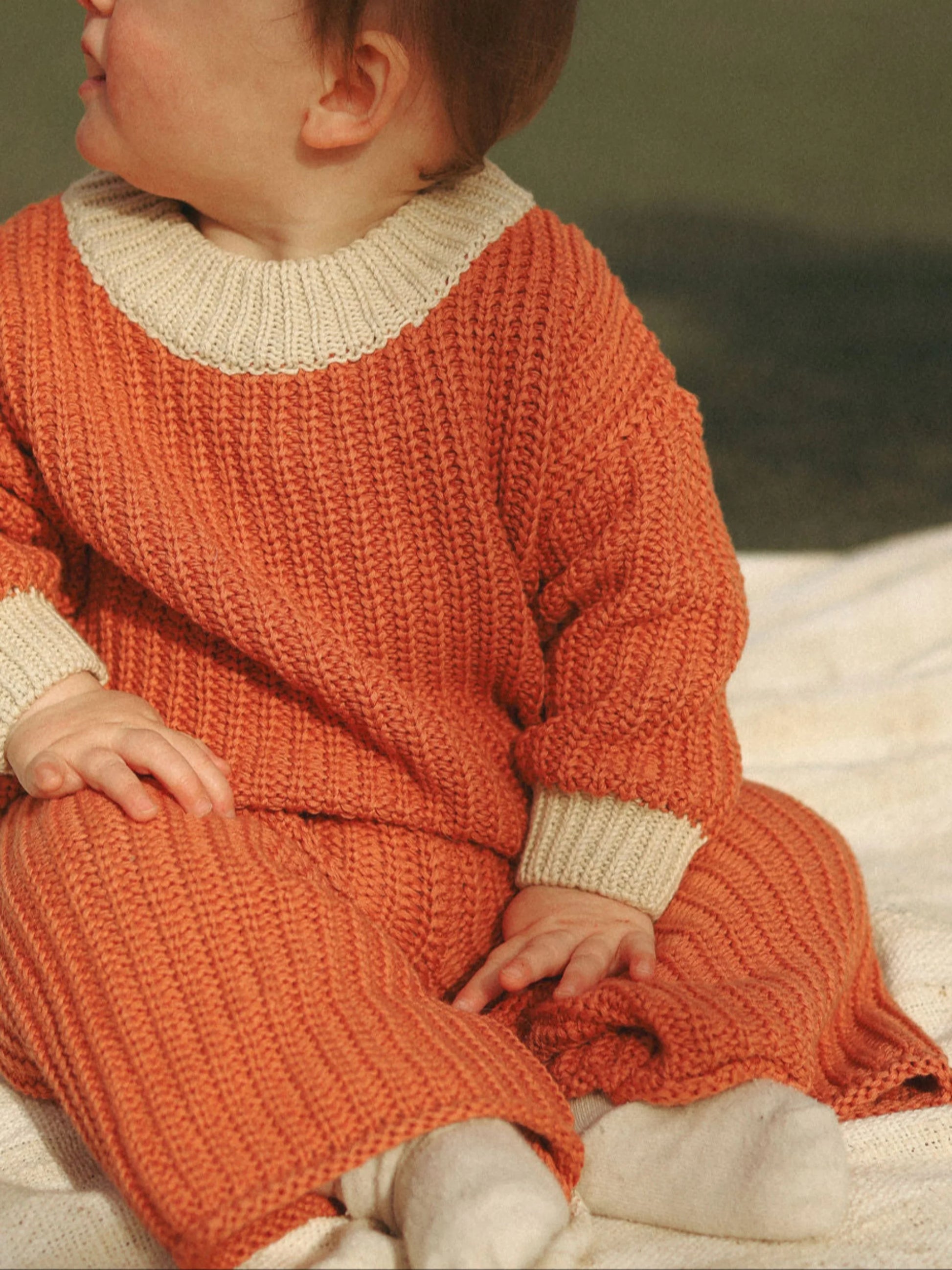The rich rust tone adds a warm, earthy feel to their winter wardrobe and pairs beautifully with the matching Rust Chunky Knit Pants.