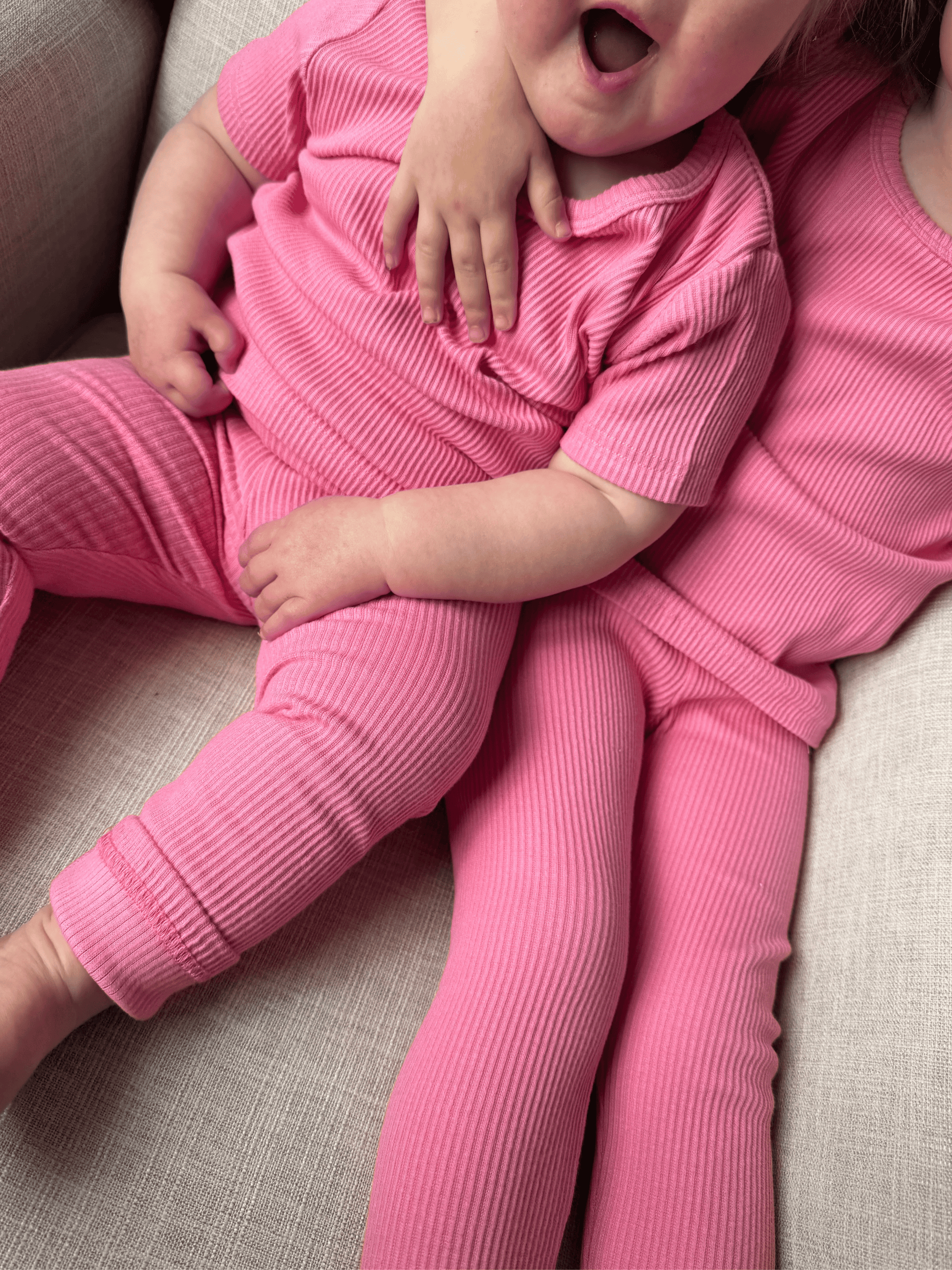ade from premium ribbed cotton for comfort and stretch. Available in Sky 💙 and Rosie 💗.