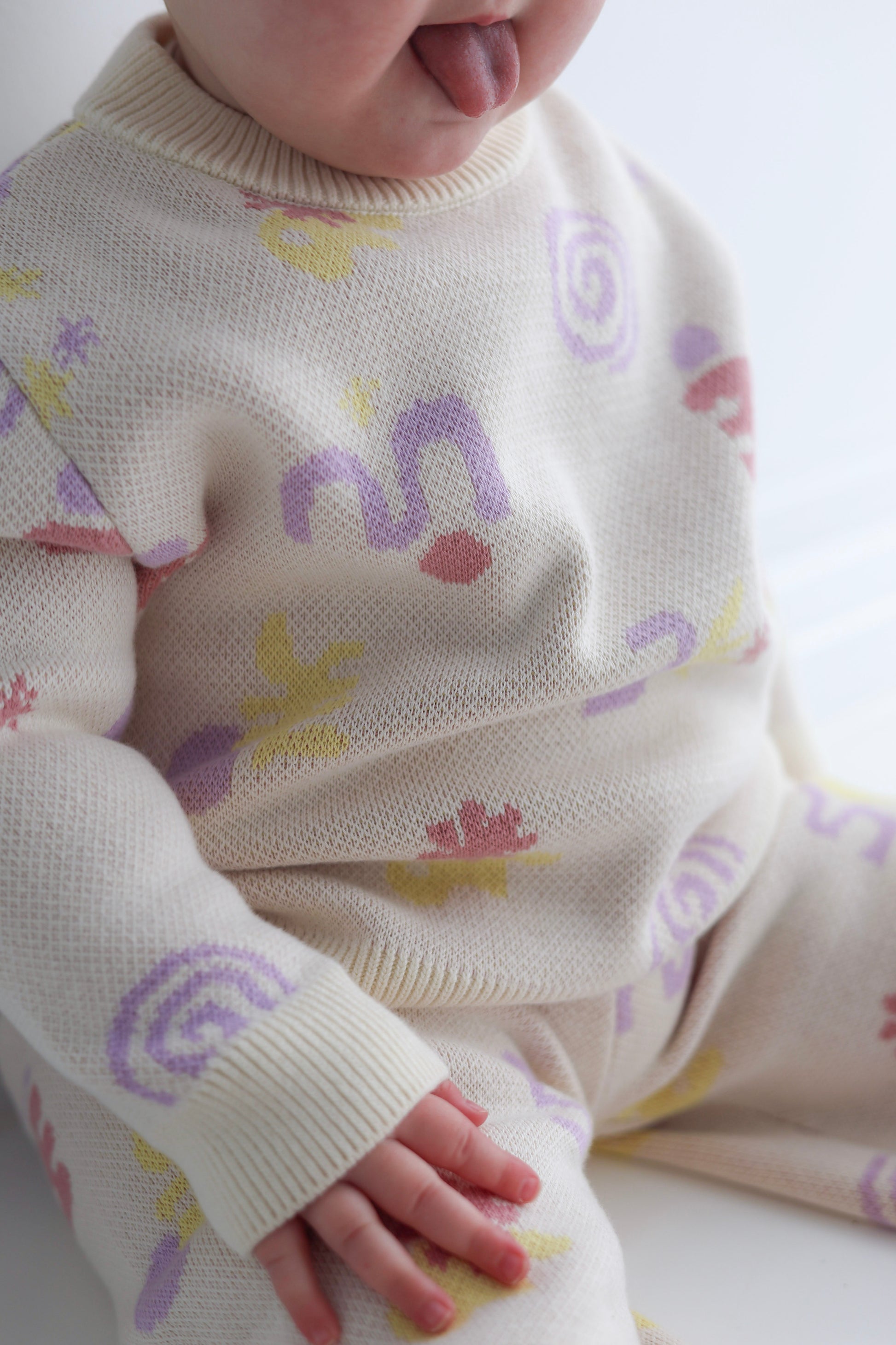 Featuring our Seaside pattern, this beautiful knit jumper is part of a matching jumper & pant set. Complete the look with our Seaside knit pants and mix and match with with other knitted pieces from this collection.
