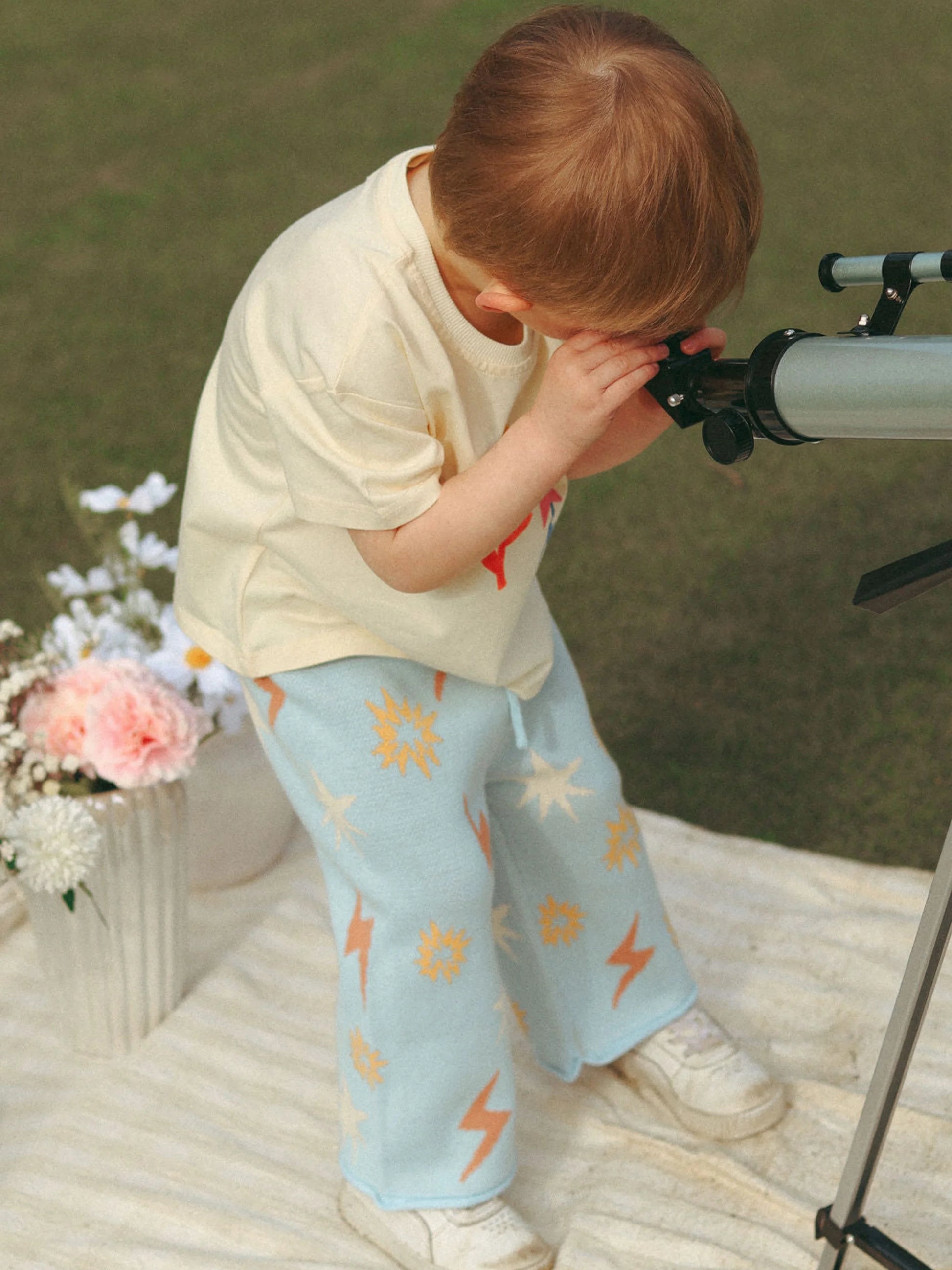 The Leo Jacquard Knit Pants are crafted from breathable 100% cotton knit. Featuring our unique celestial design – created by an Australian mum, for mums who want pieces that feel a little bit magical. They feature a soft elastic waistband and relaxed fit, perfect for active little ones.