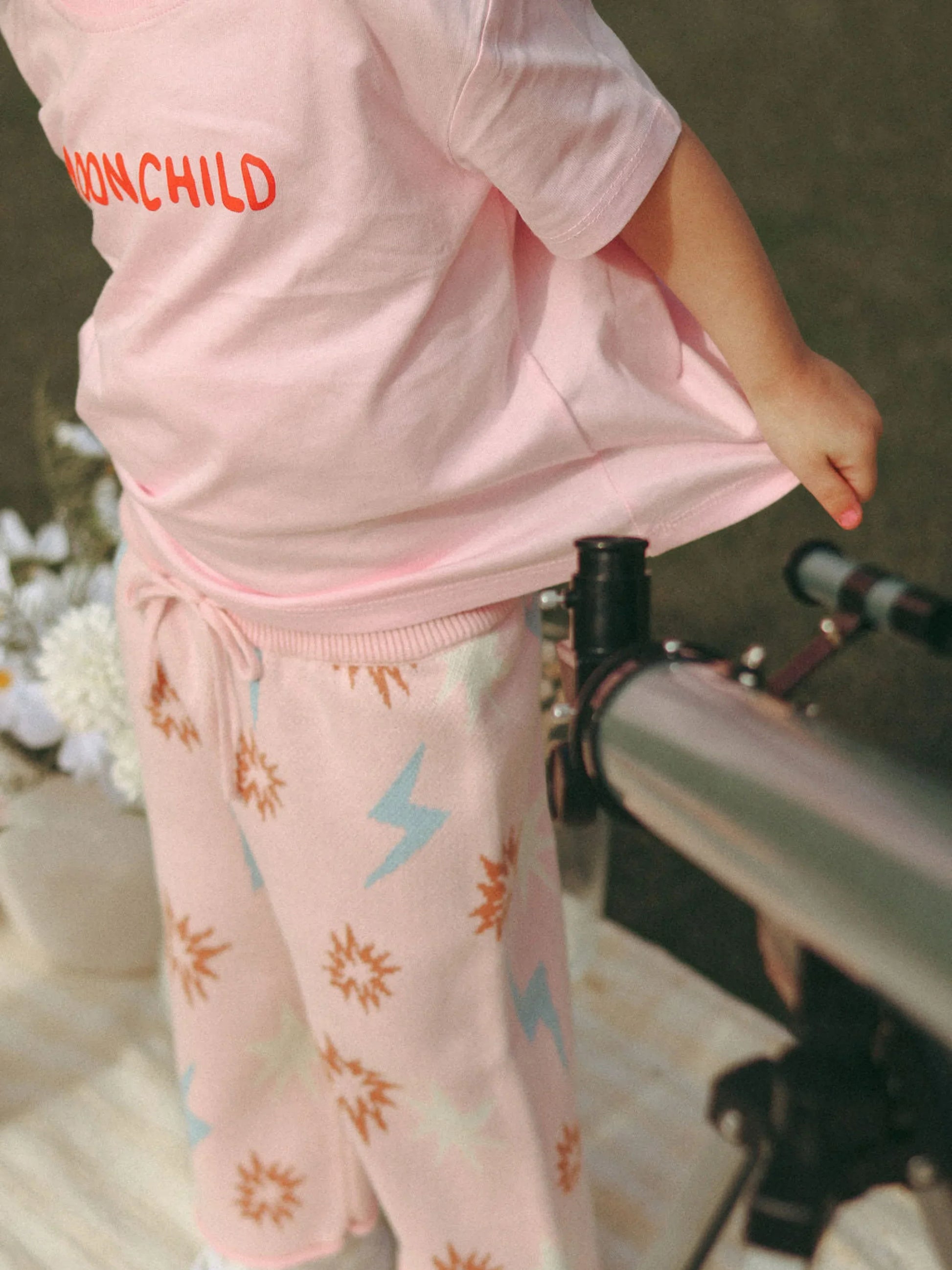 This tee is part of our Winter Solstice drop and was designed to mix seamlessly with the pink Leo set and matching chunky knit — but it works beautifully with neutrals too.