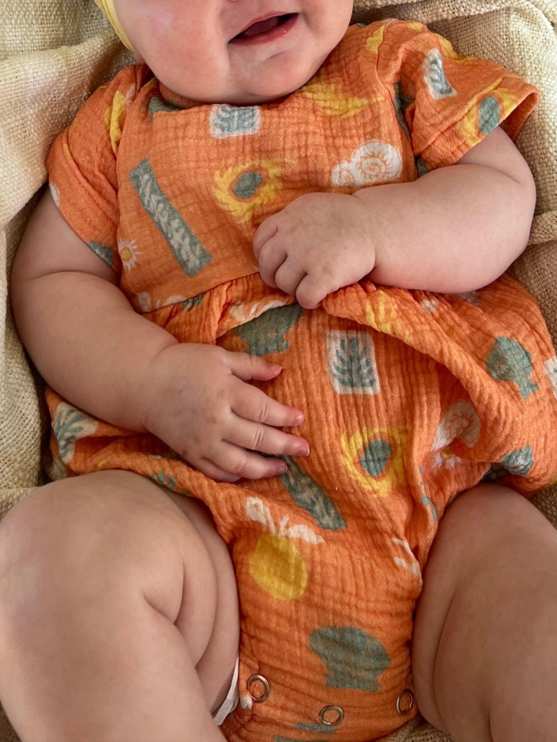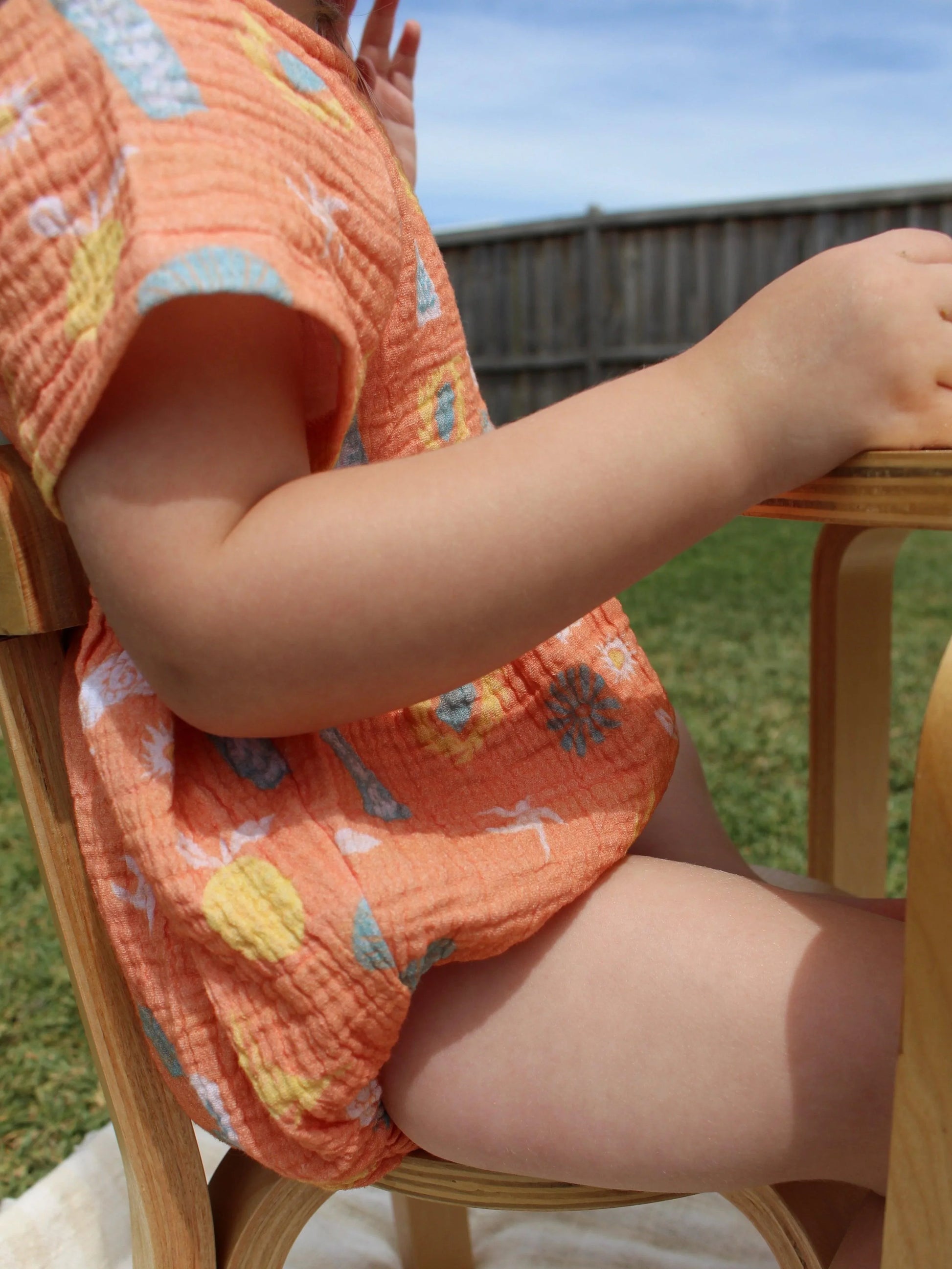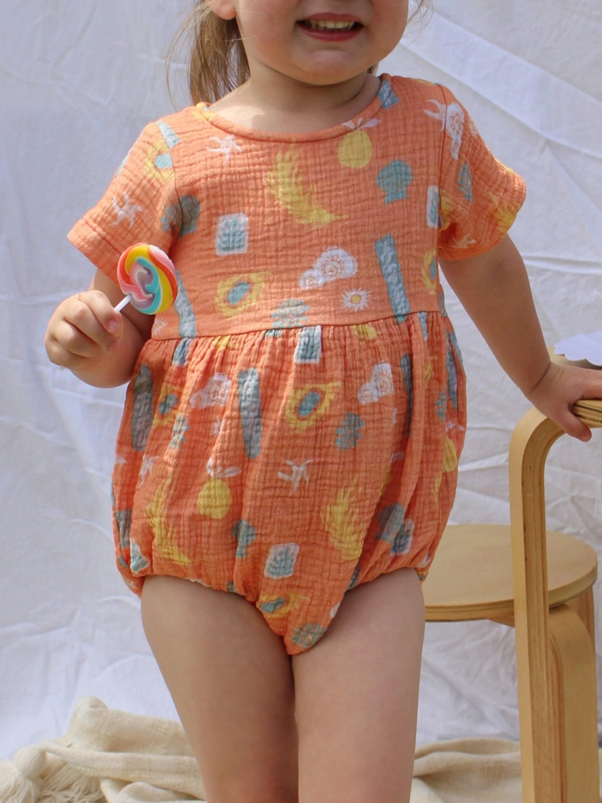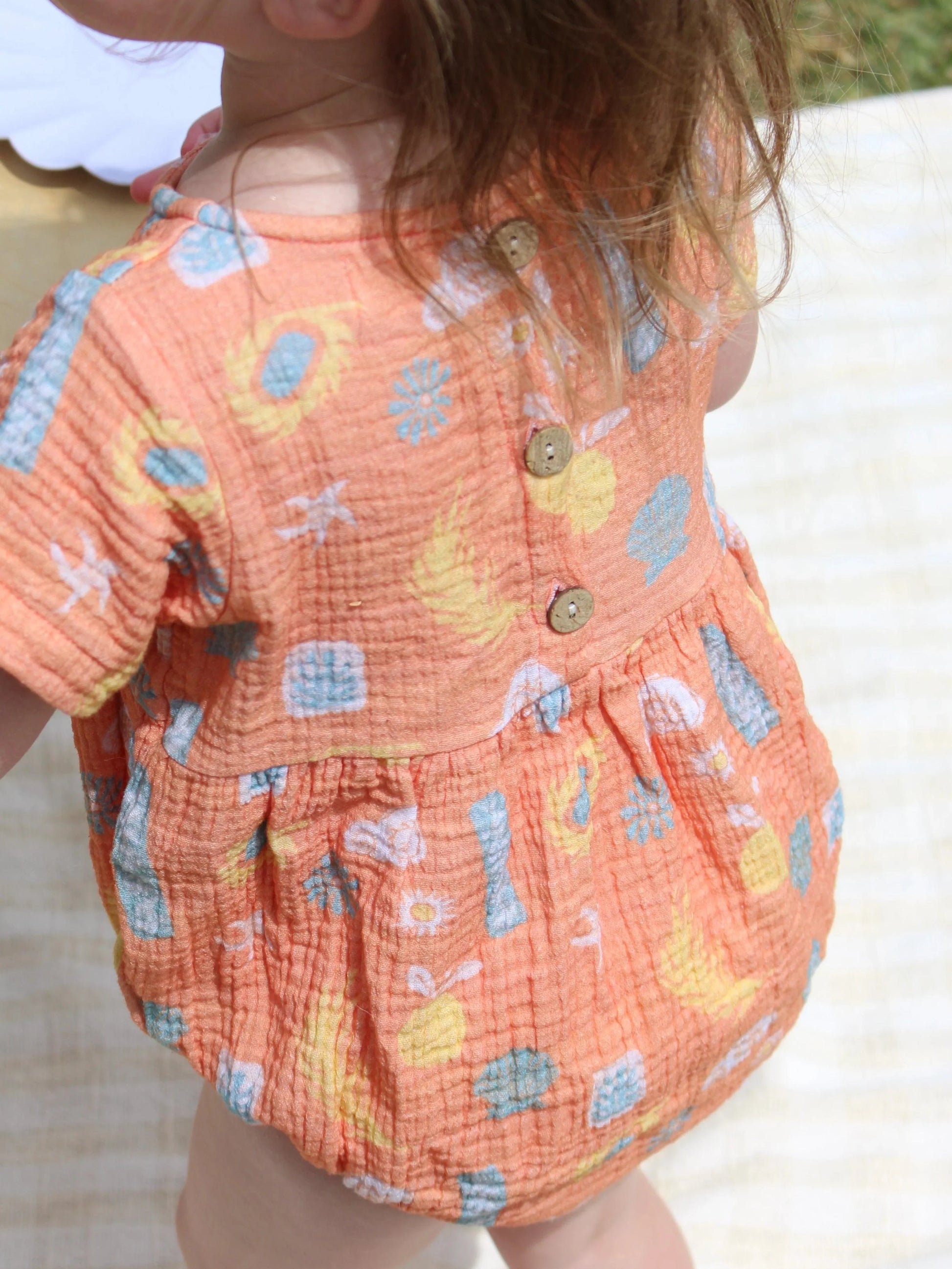 Our very popular Muslin Romper reimagined with our newest Sol print.